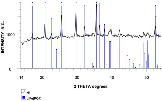 Cathode materials are one of the key components of Li-ion batteries, and can determine capacity and power performance. Olivine-type lithium iron phosphate material is a very promising cathode material for lithium-ion batteries due to its high theoretical capacity (170 mAh/g) and it has an average charge/discharge voltage of 3.4 V []. In addition, the material is quite cheap and it is environmentally friendly, with good thermal and cycling stability. The main disadvantages are low electronic and ionic conductivity because of the slow rate of lithium ion diffusion through the material’s solid structure [].