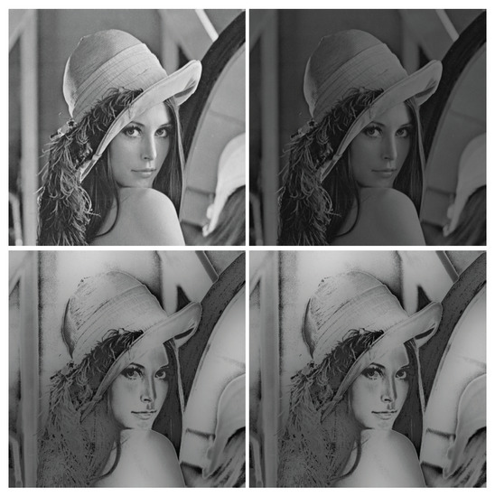 Using Equations (3) and (5), then [ b p - r p , b p + r p ] = [ a 1 , p b p + a 2 , p - a 1 , p r p , a 1 , p b p + a 2 , p + a 1 , p r p = [ a 1 , p ( b p - r p ) + a 2 , p , a 1 , p ( b p + r p ) + a 2 , p ] = [ A p ( b p - r p ) , A p ( b p + r p ) ] , if we ignore the quantization error a 2 , p , the value of I p is equal to I p . Thus, we can notice that I p is independent of illumination changes and can be used as an illumination invariant feature. In Figure 1, two gray images with different illuminations and their corresponding illumination invariant feature images are presented. We can see that although the input images are different, their illumination-invariant feature images remain almost the same.