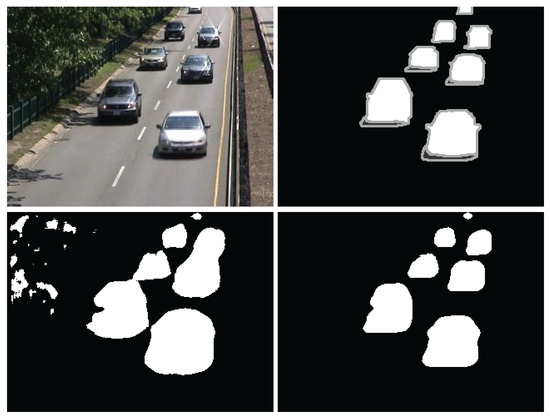 24. Yao, J.; Odobez, J.M. Multi-layer background subtraction based on color and texture. In Proceedings of the 2007 CVPR’07 IEEE Conference on Computer Vision and Pattern Recognition, Minneapolis, MN, USA, 17–22 June 2007; IEEE: Piscataway, NJ, USA, 2007; pp. 1–8. [Google Scholar]