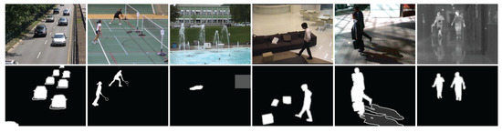 The general idea of background subtraction is to automatically generate a binary mask which classifies the set of pixels into foreground and background. In the simplest case, disparities between the current frame and a background reference frame are usually indicative of foreground objects; this might work in certain specialized scenarios. However, finding a good empty background reference frame in order to perform actual “background subtraction” is always impossible due to the complexity of real-world scenes, due to, for example, illumination changes and dynamic backgrounds. Thus, a multitude of more sophisticated methods have been proposed in the recent past [1,2]. Their efforts mainly focus on two aspects: the first takes on more sophisticated learning modes, while employs more powerful feature representations.
