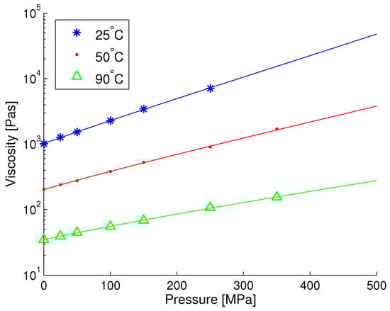 The results from the pressure-viscosity measurements of [Choline] [Proline] at three different temperatures are shown in