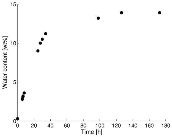 C and a relative humidity of approximately 15 % for 180 h and the water content was measured at certain intervals. The results can be seen in
