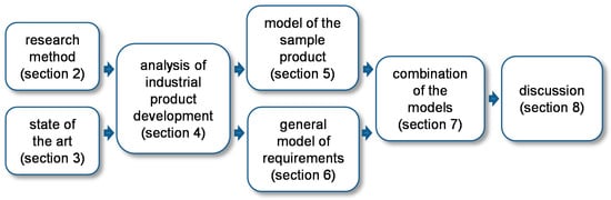 The rest of this paper is structured as follows (compare Figure 2): The research method for the investigation of the feasibility and the advantages of a model-based approach is described in Section 2. Section 3 contains the state of the art in the scientific fields “requirements management” and “graph-based design languages”. The main analytical part in the investigation, the analysis of an industrial product development process, is reported in Section 4. Section 5 describes the first research result, a model of the sample product in a graph-based design language. The second research result, a general model of requirements, is explained in Section 6. A validation is achieved by combining the model of the sample product and the general model of requirements; this combination is described in Section 7. In Section 8, the research results are discussed and an initial validation in industry is reported.