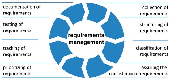 In order to structure the later discussion in this paper, a model was developed on the basis of requirements engineering process models (compare e.g., [23,24]), which allows for distinguishing different stages in requirements management (Figure 5).