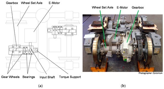 The sample product is a gearbox for electrical railway vehicles (Figure 9). Such gearboxes are mounted in (pivoted) bogies of rail vehicles (compare also a 3D view in [45]); typically there are several driven axles per vehicle.