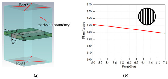 (a) Simulation model of the unit cell; (b) reflection phase of the planar superstrate.