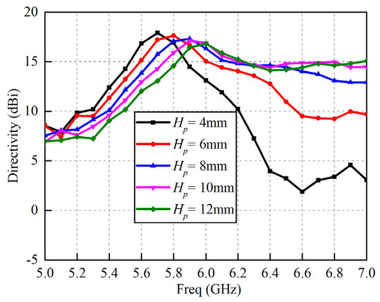 Figure 7 gives the simulated gain–frequency response against Hp for the proposed FPRA. One can observe that the higher Hp (from 4 mm to 12 mm), the wider gain bandwidth can be achieved, but the peak gain will drop slightly. When Hp is up to 10 mm, the increase of Hp will not bring the improvement of bandwidth any more. For the purpose of wideband and high-gain performance, Hp is set as 10 mm.