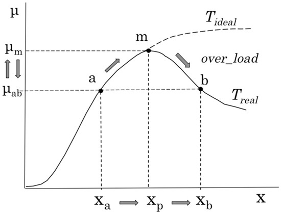 Figure 2 shows the relation between the degree of activity of the server system (x) and amount of processing data (μ), that is, the system characteristic called throughput (T), which represents the processing capabilities of the server system. Theoretically, this graph has a monotonically increasing and saturated shape like Tideal. However, in actual operation, this demonstrates dome-shaped characteristics like Treal. In the overloaded state, in which throughput exceeds the limit state at which throughput is maximized, throughput degrades even if the degree of activity of the server system increases. Generally, it is not easy to specify where the state of the running server system is on Treal. For example, it is impossible to assess that the system operating near state a is approaching the limit state m, or that the system is now operating in overloaded state b and exceeding limit state m. Therefore, prior to the operation of the server system, the throughput characteristic in a predetermined scenario is captured using model analysis, and at the time of actual system operation, the system operating state is estimated using the characteristic and measured values of x and μ. Then, for example, when it is assumed that the system is shifting from state a to state m, to maintain the degree of activity of the system, the amount of processing data is adjusted or the scaling operation is performed. Although the function or configuration of the system changes because of such a scaling operation, the throughput characteristics also change, as shown in Figure 3. If the scaling operation changes the throughput characteristics from T(t0) to T(t1), the system performance limit also changes from state m to state b. However, in the case in which the changed characteristic T(t1) is unidentified, it becomes very difficult to recognize the operational state of the server system, which also hinders the operation of the system. For example, if it cannot be recognized that the system is in the state that exceeds the limit state x2, the system falls into an undesirable state.