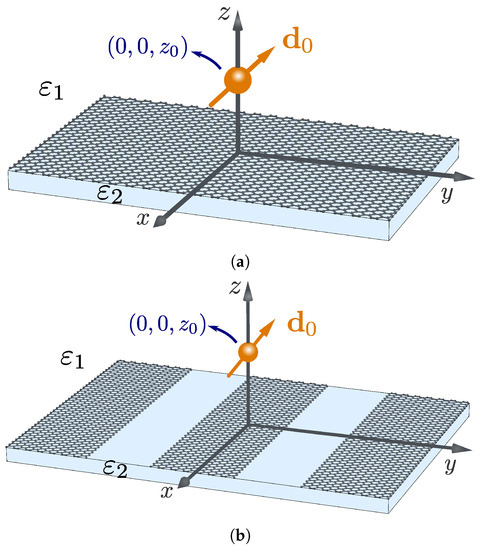 - Nikitin, A.Y.; Guinea, F.; Garcia-Vidal, F.J.; Martin-Moreno, L. Fields radiated by a nanoemitter in a graphene sheet. Phys. Rev. B 2011, 84, 195446. [Google Scholar] [CrossRef]