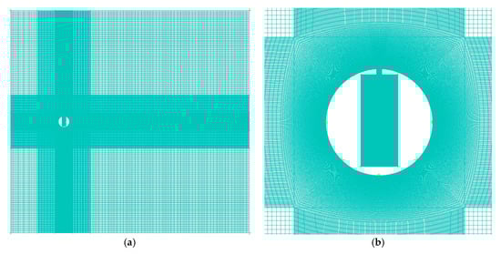 The final computational grid contains 253,000 elements. The inclusion of the synthetic jet cavity and orifice further increased the total number of elements to 333,000. The density of the mesh was highest at the synthetic jet orifice and cavity, as well as at the surface of the cylinder. The mesh density was increased here to capture the small-scale vortical structures accurately. The mean aspect ratio of the mesh was 6.6, with a mean quality of 0.997. The dimensionless size of the first cell layer near the wall () did not exceed 1.0. A structured mesh was used to minimise computational time. The grid was aligned parallel to the freestream flow away from the cylinder surface and aligned with the cylinder surface in an O-grid structure close to the cylinder surface (Figure 3). In this way, all elements in these regions are orientated in the general direction of the flow. By aligning the orientation of the grid with the flow in that region, the risk of false diffusion when using the upwind scheme can be eliminated and a more physically accurate solution is obtained [].