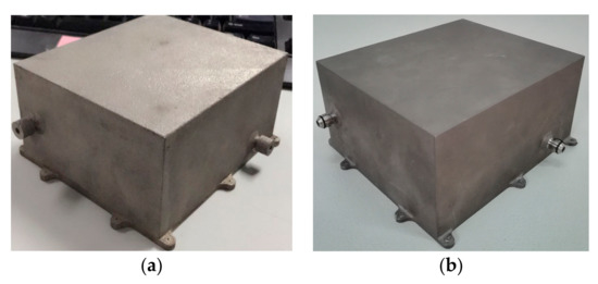 3D metal print storage tank (a) before optimization; and (b) after post-processing.