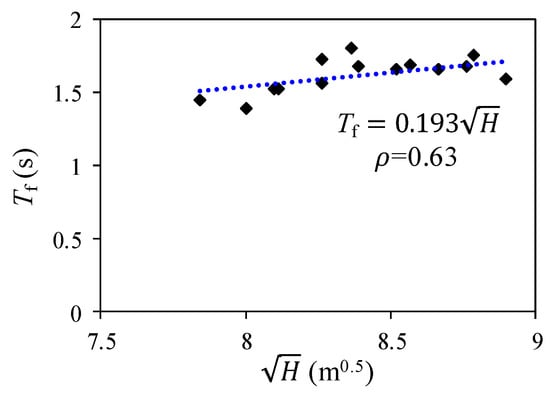 (1) For the appropriate Tf, a statistical regression analysis is conducted based on the seismically isolated tall buildings designed by the authors, as shown in Figure 9. An equation, which describes the relationship between the height and Tf, is obtained as shown in Equation (1). Here, H represents the total height of the structure.