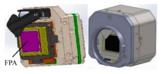 The specifications of the LW 640 × 512 uncooled IR detector, which has a 20-μm pitch, are listed in Table 1, and its physical models are illustrated in Figure 4. For extended sources, the Noise Equivalent Temperature Difference (NETD) is the smallest measurable signal produced and it is the temperature difference when signal-to-noise (SNR) equals to 1. The derivation of the SNR and NETD equations shall be presented and the in particular the impact the optical system design has on these characteristics shall be emphasized. FPA usually plays a role of the imaging focal plane of infrared detector.