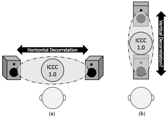 Table 8, the pink noise LUFS results demonstrate that the relative loudness of the ‘High’ frequency band is considerably lower than that of the ‘Low’ frequency band. When comparing this against the LUFS of the test stimuli, it is clear that the levels used during testing are not representative of a typical interband frequency relationship found in a complex source. Given that the loudness of the high frequency stimuli was comparatively high during testing, it may have resulted in an increased perception of VIS for all conditions, resulting in more subtle VIS changes from decorrelation—further testing on this hypothesis is required to determine the effect of level and loudness on VIS perception.