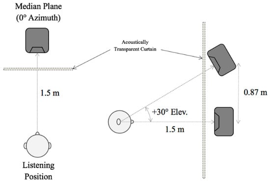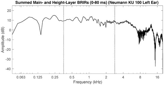 23]. Sine sweeps were reproduced from both the main- and height-layer loudspeakers independently, with the signals captured by a Neumann KU100 dummy head located in the listening position. The main- and height-layer BRIRs were then time and level aligned, before being summed together to replicate the vertical testing condition.