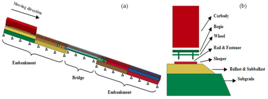 - Varandas, J.N.; Hölscher, P.; Silva, M.A.G. Dynamic behaviour of railway tracks on transitions zones. Comput. Struct. 2011, 89, 1468–1479. [Google Scholar] [CrossRef]