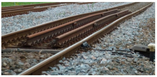 The first category problems can be observed as the degradation of track alignment, which is shown by the measured longitudinal track level in Section 3 and explained in Section 4. Moreover, track irregularities have also been reported in transition zones, e.g., [1,3,4,6,7]. An example of a transition zone with large track irregularities is shown in Figure 16. The second category problems result in maintenance, such as ballast cleaning (undercutting) by ballast cleaners [36,56], or ballast adding by track stoneblower [56,62]. When the problems are not solved timely, frost heave and mud pumping problems may occur. All of the problems cause a significant increase in track maintenance costs and reduction in passenger comfort. A possible solution is to improve the drainage system in transition zones at the design stage, since currently most codes regard the drainage system in transition zones the same as that in free track, e.g., in [63].