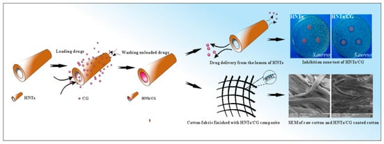 - Wu, Y.; Yang, Y.; Liu, H.; Yao, X.; Leng, F.; Chen, Y.; Tian, W. Long-term antibacterial protected cotton fabric coating by controlled release of chlorhexidine gluconate from halloysite nanotubes. RSC Adv. 2017, 7, 18917–18925. [Google Scholar] [CrossRef]