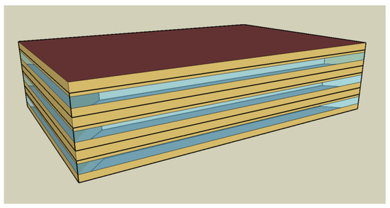 The studied building is a DOE [45] medium office building model with a total area of 4982.19 m2. It was selected from U.S. Department of Energy Commercial Reference Building Models from the National Building Stock for the energy simulation in Building (Figure 1). It consists of three floors, each with an area of 1660.73 m2. The window to wall ratio is 33% of the total wall area per floor. The construction details of the building were based on previous studies [3,46,47]. The building models are considered as an office building space. To investigate the influences of PCMs on the heating and cooling energy performances, four building prototypes are considered. The reference model without PCM is compared to another three with PCM incorporated into its envelopes. The PCMs were installed on the interior surfaces between the fiberglass and plasterboard of the roof and all four sides of the interior walls (Figure 3). The construction details of the lightweight building model are shown in Table 1 and Table 2 and the physical properties of the used PCMs are listed in Table 3.