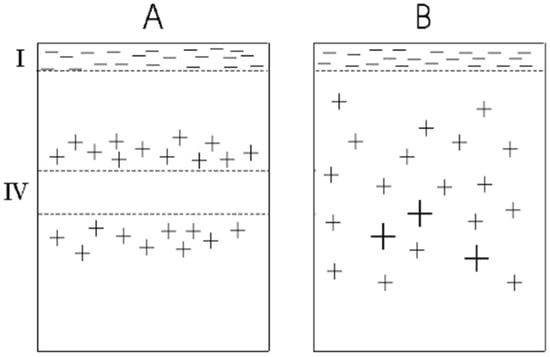 Schematic diagram of proposed electromagnetic (EM) field shapes characterising (A) conscious and (B) unconscious fields. Roman numerals indicate cortical layers: Layer I is at the surface of the cortex (After [71]). This represents a snapshot of one instant in time: the pattern is assumed to change on a time scale concomitant with the rise and fall of the conscious experience, as in the right hand panel of Figure 3.