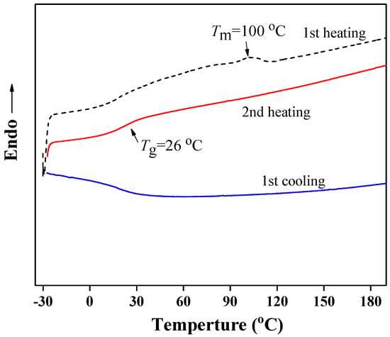 Differential scanning calorimetry (DSC) curves of the obtained PBLG-PPG-PBLG film during heating and cooling.