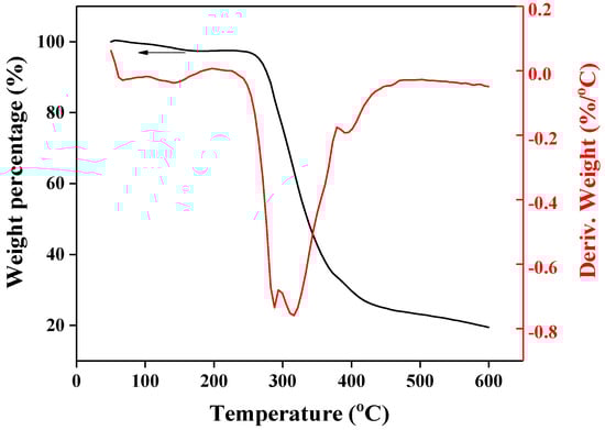 Thermogravimetric analysis (TGA) curve of the PBLG-PPG-PBLG film.