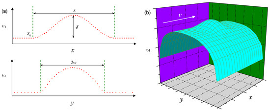 where and represent wavelength and maximum depth of a rail weld, respectively; is the starting position of a rail weld applied; is one-half width of the weld and assumed as 15 mm in this paper according to field observations.