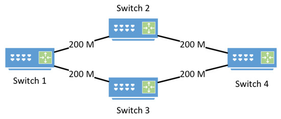 where Equation (3) prevents flows from returning to the source switches while it makes the flows stay on the destination switches. Furthermore, it forces the flows to leave the origin switches and enter the destination ones. In other words, Equation (3) is the flow conservation constraint. Inequality (4) guarantees the link load to be smaller than the maximum target utilization . Equation (5) states delay requirement of flows. To this end, it calculates the delay of the selected path for each flow. This calculated value must be less than the maximum tolerable delay of the flow. When a switch is not the source or destination of a specified flow, the flow must leave that switch if it moves in. This limitation is met by Equation (6). Equation (7) makes sure that there is no loop in the routing matrix. Since the optimization problem is in form of Binary Linear Programming, it is a branch of integer linear programming that can be easily solved by the MATLAB (MATLAB version: R2016b (9.1.0.441655) 64-bit (win64) 7 September 2016, MathWorks Company, USA, 1984–2016, Professional License) convex programming language (CVX) toolbox.