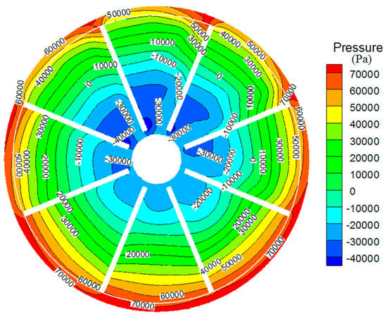 Z is −10 mm. This axial section is also the middle cross-section of the impeller blade. According to the static pressure value and its position (radial direction and