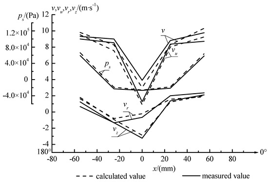 Figure 11. The flow field calculation, measurement data, and the curve contrast are shown in