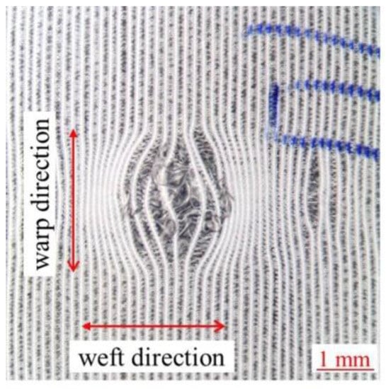 Figure 8 shows that both the experimental and control groups have a bursting strength between 170 and 180 N, while Figure 9 shows that samples that undergo the bursting test all exhibit failure along the weft direction, rather than the warp direction.