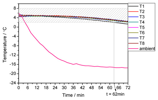 - place six PCM panels in a 5~6 °C cooler for 8 h;
