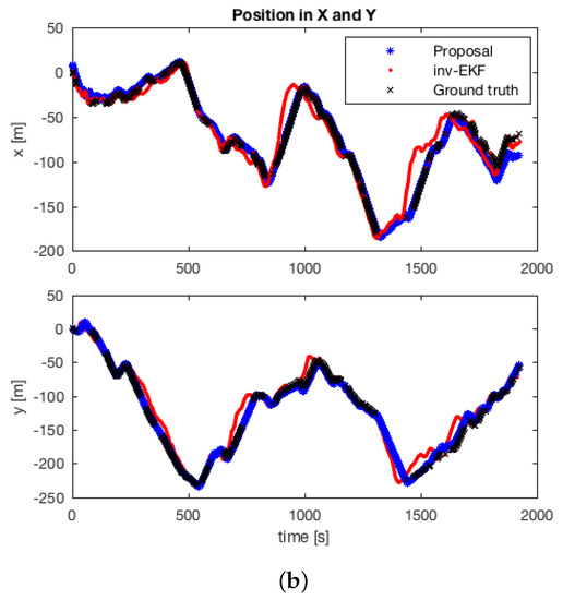 Finally, Figure 16 and Figure 17 present comparison results with a well-acknowledged technique, such as the inverse EKF parametrization method. Here, the proposed approach confirms its validity to deal with large outdoor scenarios, but also to improve the final estimation accuracy and the scale estimate.