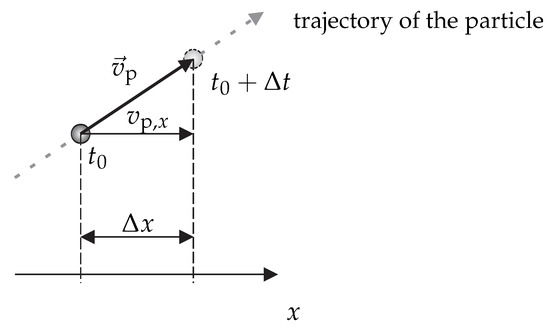 with as the change in space during the time period . The approximation in Equation (2) is valid when the particle acceleration during the measurement is negligible. This is a common assumption, which reduces the required number of pairs of position and time to two, cf. Figure 3. Either the change of the particle position for a given time period or the time period for a given spatial distance is then measured. Accordingly, the time-of-flight principles can be subdivided into two categories using time measurements or space measurements. Instead of two pairs of position and time, also a higher number of pairs can be acquired to take the acceleration into account where necessary [31,32,33]. Furthermore, the time-of-flight principles are also capable of performing three component measurements, e.g., with planar illumination, planar detection and at least two observation directions for triangulation.