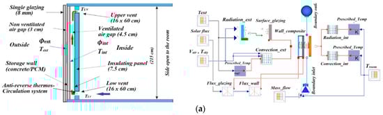 - Leang, E.; Tittelein, P.; Zalewski, L.; Lassue, S. Numerical study of a composite Trombe solar wall integrating microencapsulated PCM. Energy Procedia 2017, 122, 1009–1014. [Google Scholar] [CrossRef]
