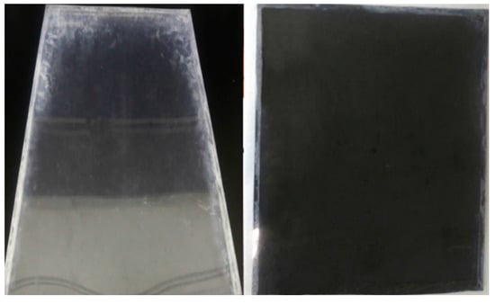 Photographs of the panels without (left) and with the CaCl2·6H2O /EG composite PCM (right). Reproduced with permission from []. Elsevier, Applied Energy, copyright 2017.