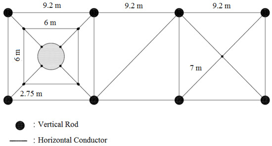 The main factor behind this improvement is the addition of three additional electrodes and two rectangular rings, with the longer conductors connected to the local transformer grounding as shown in Figure 1. Thanks to this new scheme, the need to repair and replace in the case of a fault occurrence is decreased. To examine the role of the PMGS, we assume that it is 1 m deep and further that the soil resistivity, relative permeability and permittivity are 100 m, 1 and 10, respectively.