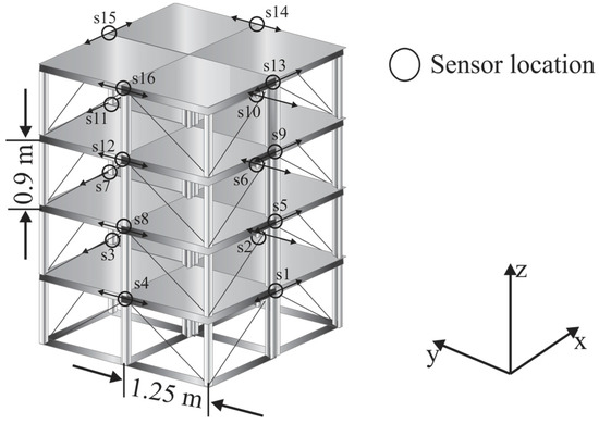 Benchmark structure used and the location of the used sensors.