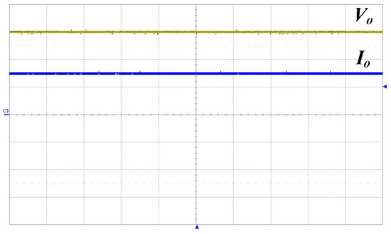 Figure 7 presents the measured inductor current iLPFC1. The measured switch voltage vDS2 and inductor current iLr are shown in Figure 8, and the series resonant tank resembles an inductive load. The measured DC-bus voltage is shown in Figure 9, and the average value of VDC is approximately 318 V. Figure 10a,b presents the measured voltages vDS1 and vDS2 and currents iDS1 and iDS2 of the power switches S1 and S2, respectively. ZVS is obviously achieved on the power switches; thus, the circuit efficiency is increased.