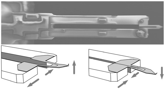 - Bontempi, A.; Teyssieux, D.; Friedt, J.M.; Thiery, L.; Hermelin, D.; Vairac, P. Photo-thermal quartz tuning fork excitation for dynamic mode atomic force microscope. Appl. Phys. Lett. 2014, 105, 154104. [Google Scholar] [CrossRef]