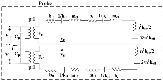 With Equation (4), the mechanical part in Figure 9 can be transformed to the electrical part as shown in Figure 10.