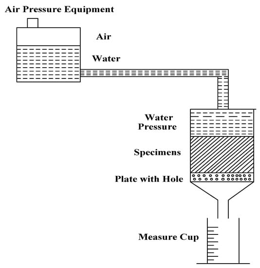 Permeability test was conducted according to JIS A 1218-1990 []. The permeability device is presented in Figure 2, and the test condition is as follows.