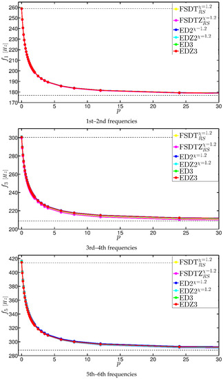 With reference to the Equations (30) and (31), it should be noted that the letter “E” specifies an ESL model, “D” means that the fundamental equations will be written in terms of generalized displacements, and “Z” stands for the Murakami’s function. At this point it is important to underline that the displacement field of the well-known first-order shear deformation theory can be obtained from Equation (27) by choosing properly the shear functions and the degrees of freedom. In the following, this theory will be indicated by the notation FSDT (First-order Shear Deformation Theory). Analogously, the term FSDTZ is introduced to identify the FSDT embedded with the Murakami’s function.