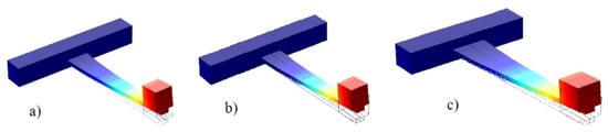 The results of the modal analysis of each cantilever are given in Figure 4 and compared in Table 3. The aim of this investigation was to find the natural frequencies of the first out-of-plane bending mode for each beam.