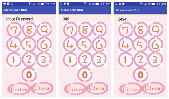 To build our cloud monitoring system, we have developed a remote mobile Morse code app under Android Studio. Figure 13 is a simplified flow chart on how the app works. It starts to compare signal input as soon as the user keys in the password. If the codes match, the user’s command will be encrypted and then sent to the receiving end. If it is incorrect, the user could reset the process by clicking “Clear”. The Morse code app user interface is shown in Figure 14.