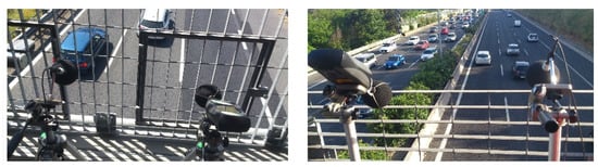 Between 18 and 19 May 2015 , the recordings were conducted in six sites along the A90 highway in Rome to collect suburban audio samples. They constituted a representative subset of the 17 sites in this pilot area according to the following four classes [36]: single road, additional crossing or parallel roads, railway lines running parallel or crossing the A90 motorway, and a complex scenario including multiple connections. In particular, the recording equipment was installed in six highway portals owned by the DYNAMAP partner ANAS S.p.A. (see Figure 2), a government-owned company under the control of the Ministry of Infrastructure and Transport in Italy. During these recordings, the weather conditions were dry and sunny, and with an average temperature of 19 C.