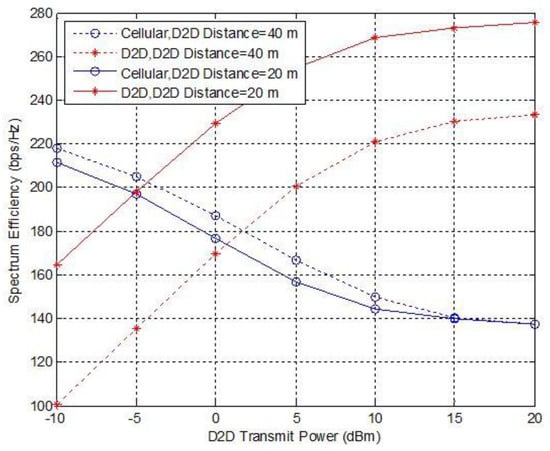where and are the transmission power of the CU m and D2D-Tx k on the mth subcarrier, respectively. Similarly, the spectrum efficiency of CU m without resource sharing can be expressed as