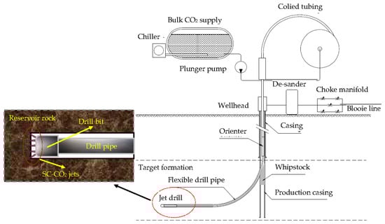 Schematic of coiled-tubing drilling technology using a SC-CO2 jet [20].