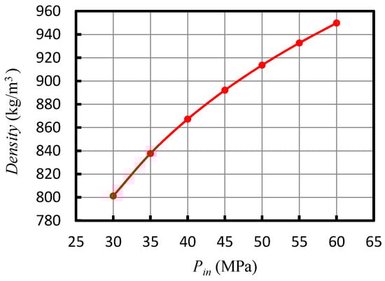 The density of SC-CO2 fluid versus nozzle inlet pressure (Data from REFPROP).
