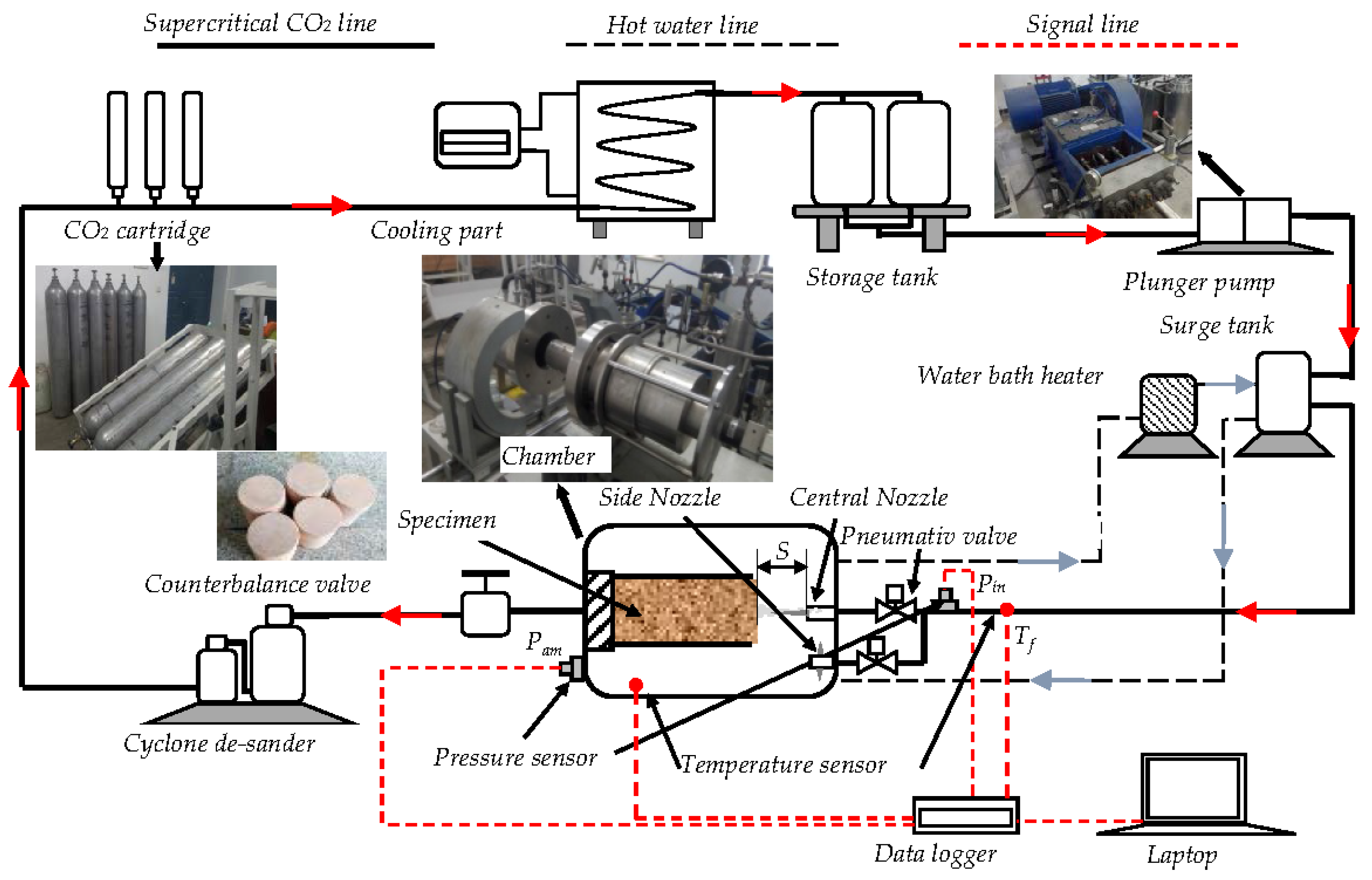- He, Z.; Tian, S.; Li, G.; Wang, H.; Shen, Z.; Xu, Z. The pressurization effect of jet fracturing using supercritical carbon dioxide. J. Nat. Gas Sci. Eng. 2015, 27, 842–851. [Google Scholar] [CrossRef]